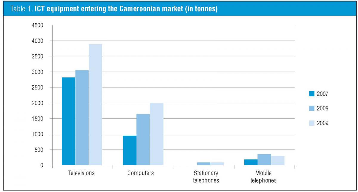 Table 1. ICT equipment entering the Cameroonian market (in tonnes)